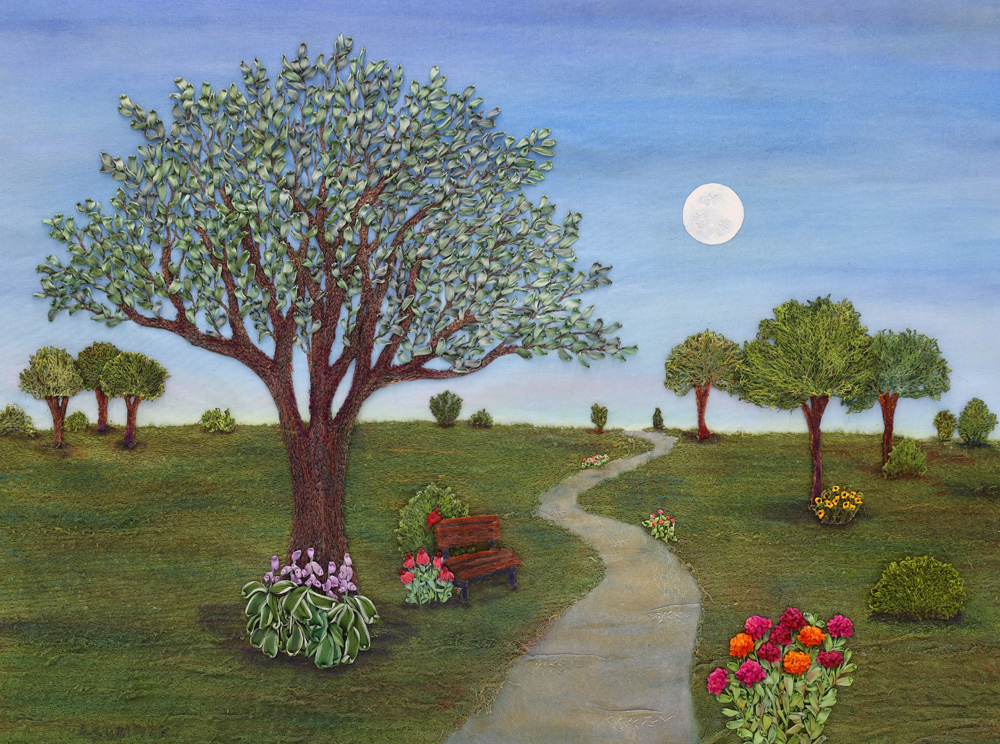I enjoy using pictures as references.  Sometimes I create what I see in the picture, but other times there are parts of the picture that interest me.  When I have just parts, I defiantly need my imagination to fill in the blanks to make the art interesting.   In the above art piece “A Walk with the Day Moon” the combination of part picture and part imagination were merge to make this art piece come into reality.  I hope you enjoy it!