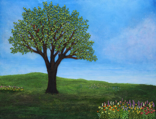 I feel fortunate to live surrounded by trees, flowers, birds, and gardens that continually inspire me. They remind me that joy isn’t only what I see around me, but also how I choose to feel within myself. I’ve always been someone who feels deeply, and it can be difficult to navigate in a world that often feels heavy. That’s why I made a conscious choice this year: to let joy be my guide, both in life and in the art I create.